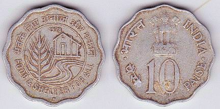 km#32  10 Paise (1978) Food and Shelter for All
