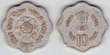 km#38  10 Paise (1982) World Food Day