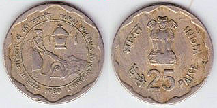 km#50  25 Paise (1980) Rural Women's Advancement