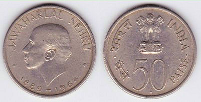 km#56  50 Paise (1964) Jawaharlal Nehru - English