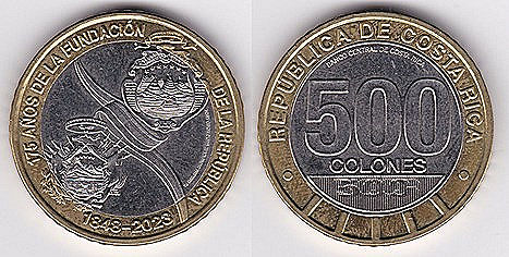 ![]() km243 500 Colones (2023) Abolition of the Army | ![]() km242 500 Colones (2023) 175 years of the First Republic | ![]() unlisted 500 Colones (2024) Annexation of Partido de Nicoya |