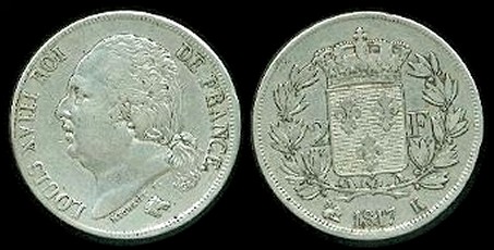 km#710 2 Francs (1816-1824)