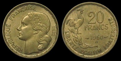 km#917.1 20 Francs (1950-1953)