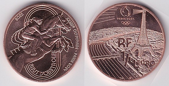 ![]() km3164 1/4 Euro (2022) Paris Olympic Show Jumping | ![]() km3162 1/4 Euro (2022) Paris Olympic Track Cycling | ![]() km1288 1 Euro (1999-2006) | ||