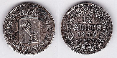 ![]() Bremen km230 1 Grote (1840) | ![]() Bremen km240 6 Grote 1/12 Thaler (1857) | ![]() Bremen km245 6 Grote 1/12 Thaler (1861) | ||