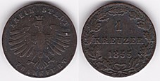 ![]() Frankfurt am Main km317 1 Kreuzer (1839) | ![]() Frankfurt am Main km357 1 Kreuzer (1859-1862) | ![]() Frankfurt am Main km367 1 Kreuzer (1862-1866) | ||