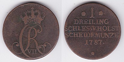 ![]() Schaumburg-Lippe km42 4 Pfennig (1858) | ![]() Schleswig-Holstein km118 1 Sechsling (1787) | ![]() Schleswig-Holstein km116 1 Dreiling (1787) | ||