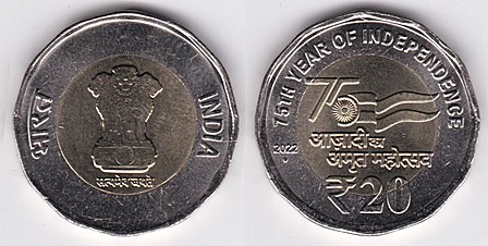 ![]() km121.5 2 Rupees (1995-2004) National Integration, Type C, 11-sided | ![]() km121.6 2 Rupees (1998-2000) Type D | ![]() km326 2 Rupees (2005-2007) cross and dots | ||