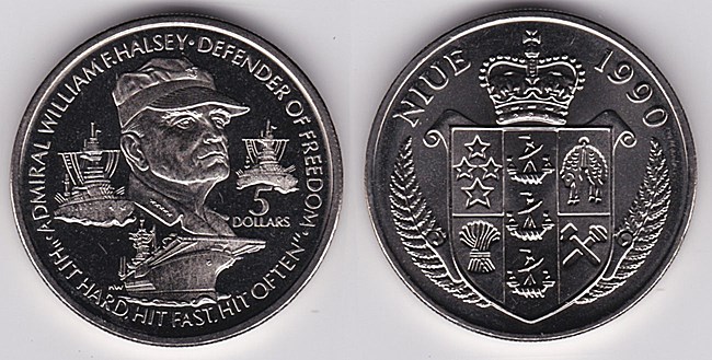 ![]() km35 5 Dollars (1990) Franklin D. Roosevelt | ![]() km37 5 Dollars (1990) Winston Churchill | ![]() km33 5 Dollars (1990) Admiral Halsey | ||