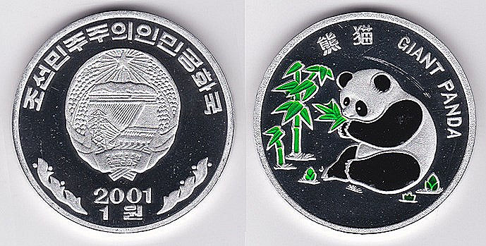 ![]() km539 1 Won (2001) Panda eating (colorized) | ![]() km1174 1 Won (2002) Begonia | ![]() km1015 5 Won (2005) | ||