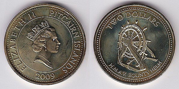 ![]() km14 1 Dollar (2006) Queen Elizabeth II 80th Birthday | ![]() km58 1 Dollar (2009,2010) Bounty Cannon | ![]() km59 2 Dollars (2009) Bounty Helm | ||