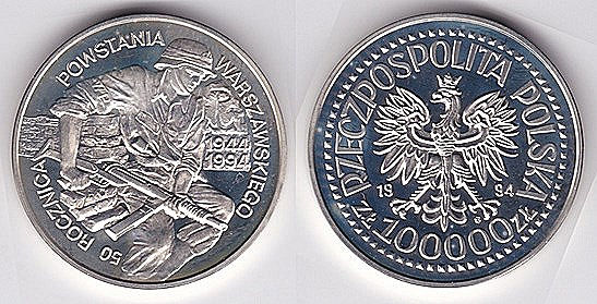 ![]() y229 50000 Zlotych (1992) Military medal | ![]() y235 100,000 Zlotych (1991) | ![]() y268 100,000 Zlotych (1994) Warsaw Uprising | ||
