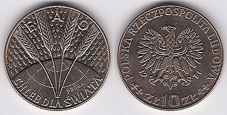 ![]() ypr187 10 Zlotych-Proba (1971) grain over globe | ![]() y63 10 Zlotych (1971) FAO | ![]() y64 10 Zlotych (1971) Battle of Silesia | ||