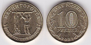 ![]() y2034 10 Roubles (2022) Magnitogorsk | ![]() y2030 10 Roubles (2022) Mining Worker | ![]() y2028 10 Roubles (2022) Ivanovo Region | ||