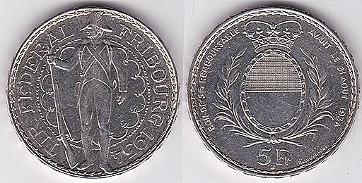 ![]() km40a.4 5 Francs (1994--) | ![]() km41 5 Francs (1936) Confederation Arnament Fund | ![]() km42 5 Francs (1939) 600th Ann. Battle of Laupen | ||