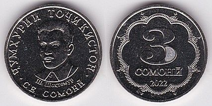 ![]() km47 3 Somonis (2018) | ![]() km57 3 Somoni (2019-2023) Sh. Shokhtemur | ![]() km9 5 Somoni (2001) | ||
