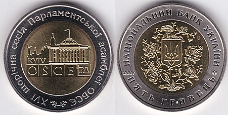 ![]() km432 5 Hryven (2007) 100 Years Motor Sich (factory) | ![]() km453 5 Hryven (2007) Pure water | ![]() km455 5 Hryven (2007) XVI OSCE Session Kiev | ||