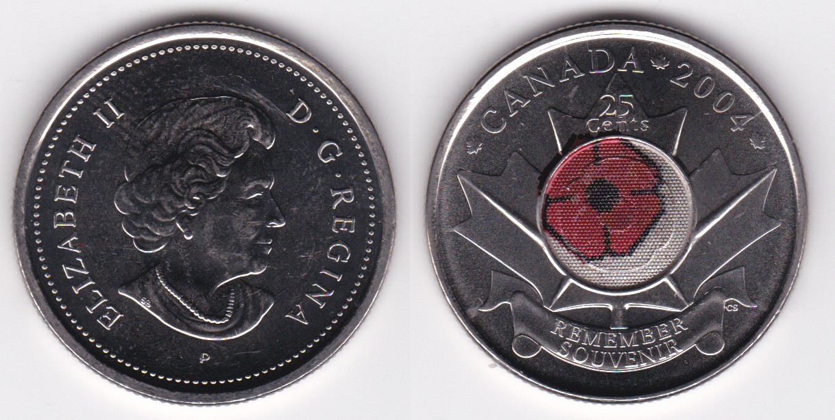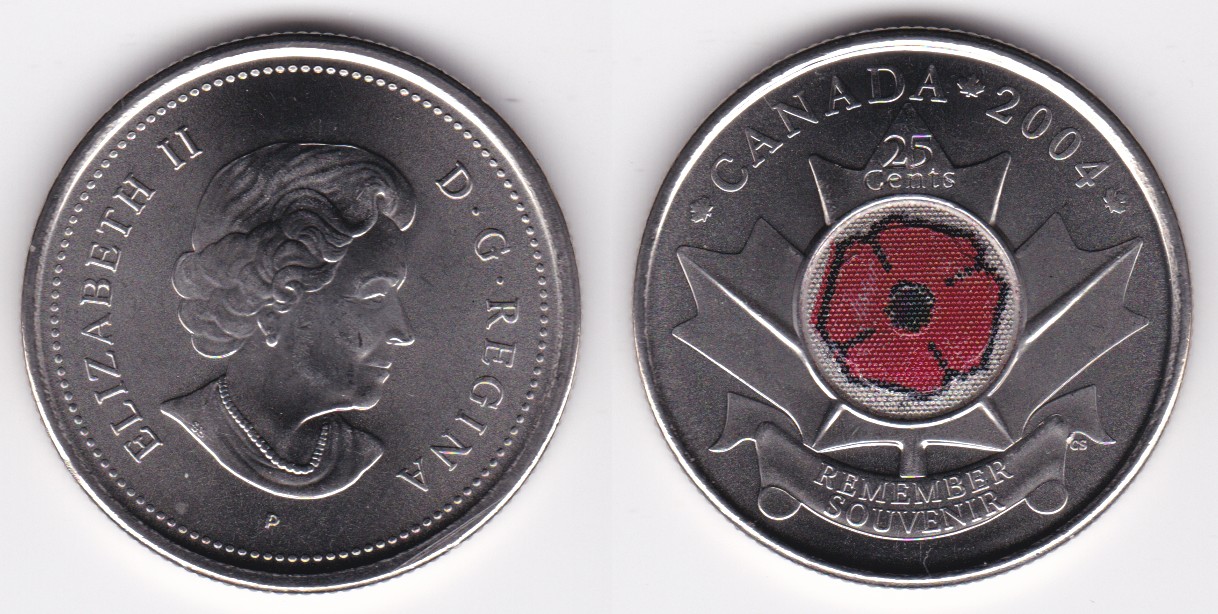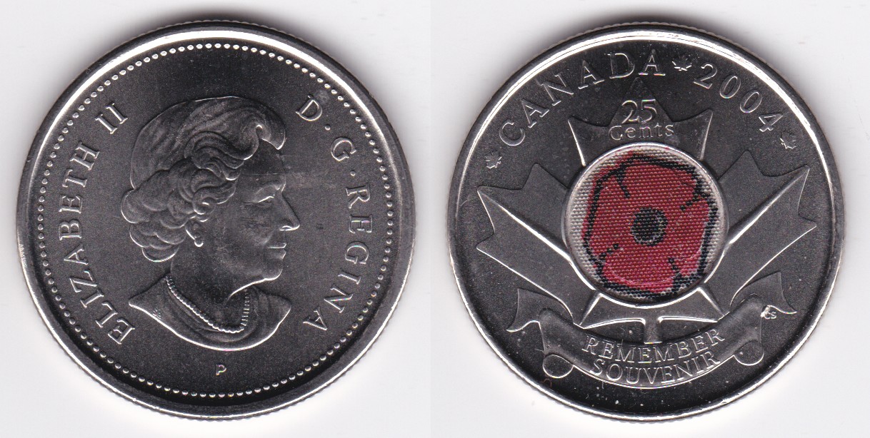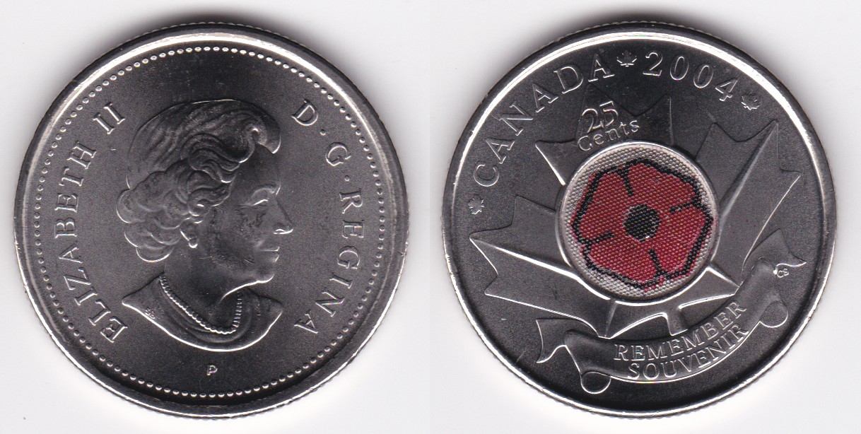 | 109530 | 2004 | km510 | 25 Cents (2004) Remembrance Day (colorized Poppy) | $0.75 | A |