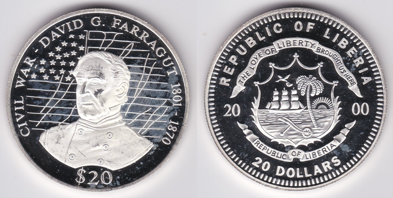 | 116961 | Liberia | 2000 | km477 | 20 Dollars (2000) Admiral David G. Farragut | $53.00 |