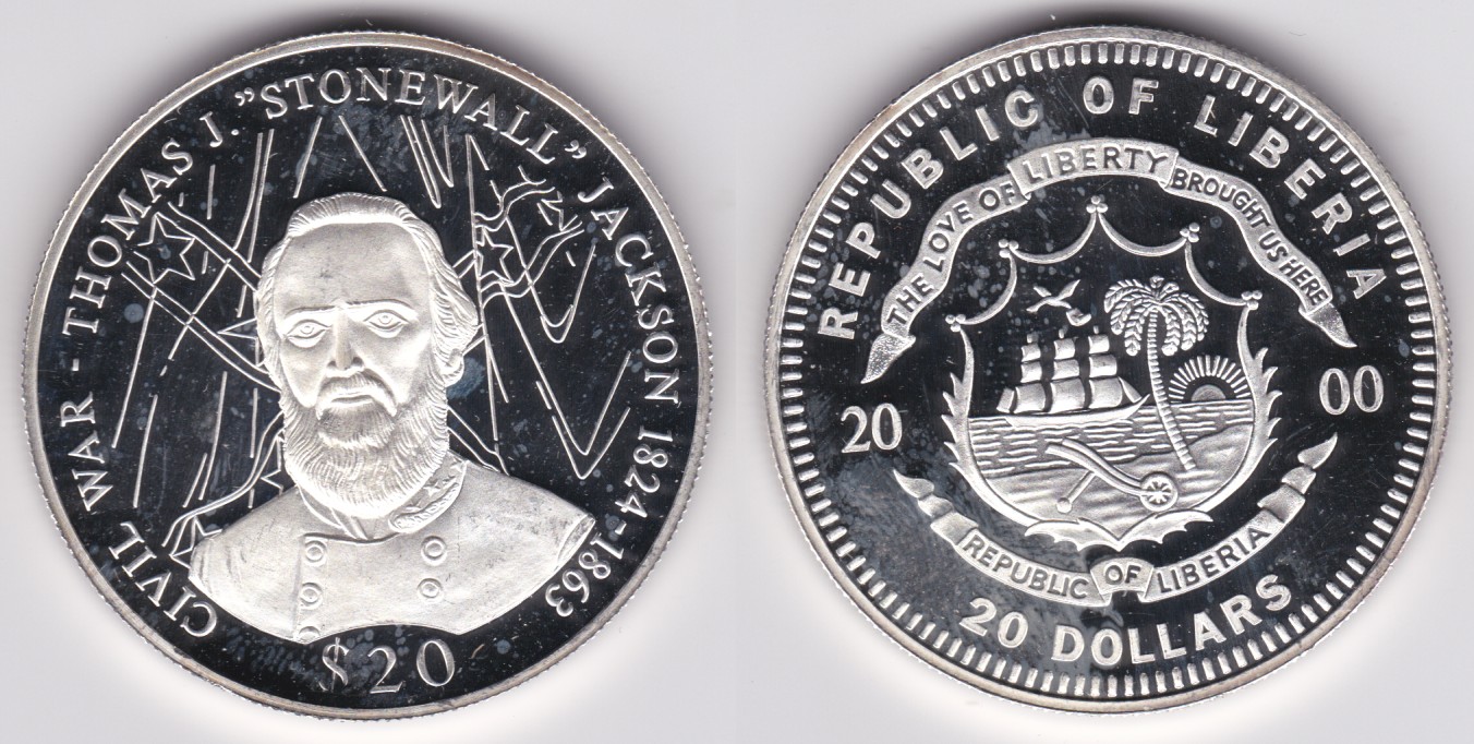 | 116962 | Liberia | 2000 | unlisted | 20 Dollars (2000) Stonewall Jackson | $55.00 |