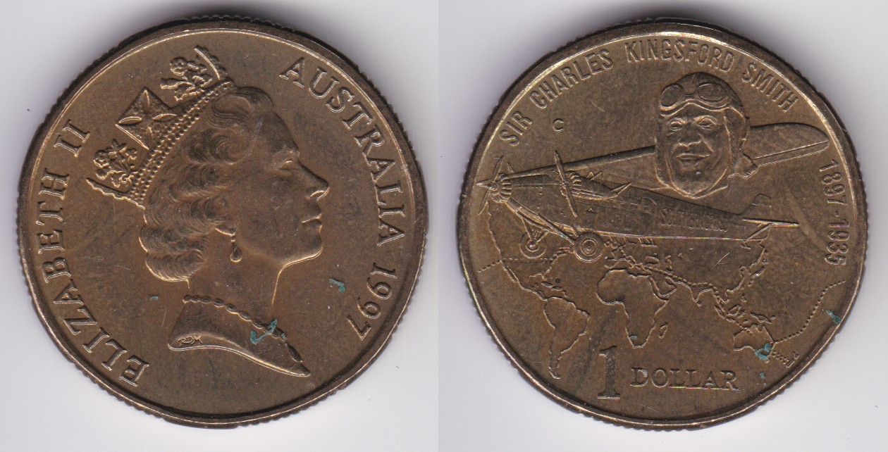 1 Dollar (1997) Sir C. K. Smith airplane over map