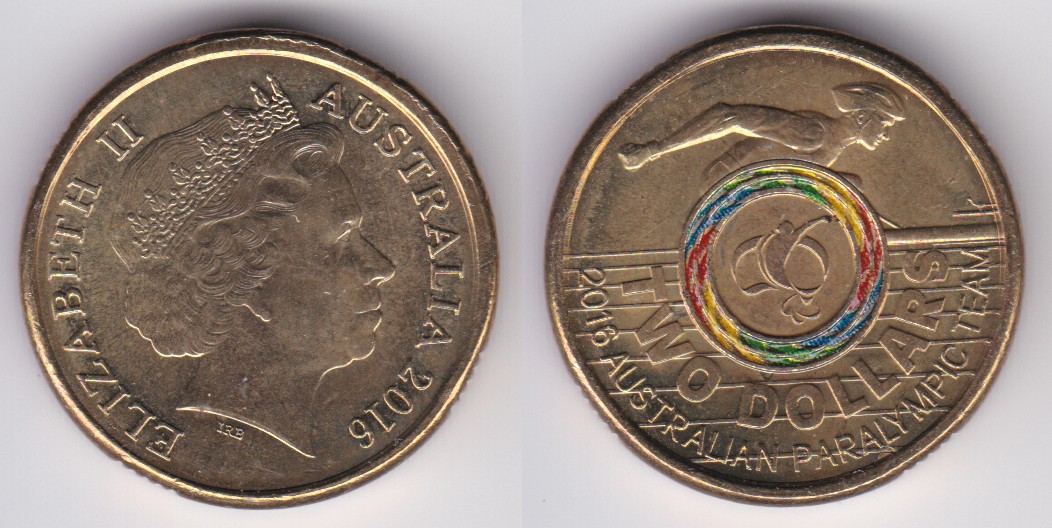 2 Dollars (2016) Paralympic Team - Multi-color ring
