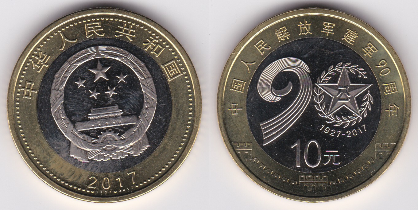 10 Yuan (2017) 90 yrs. Peoples Liberty Army