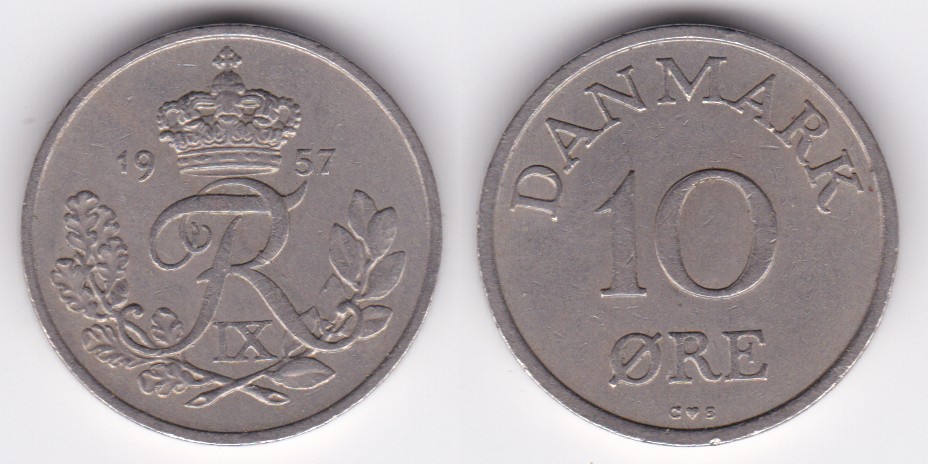 ![]() | 76646 | Denmark | 1957 | km841.2 | 10 Ore (1956-1960) (8 available) | $0.25 | A |
