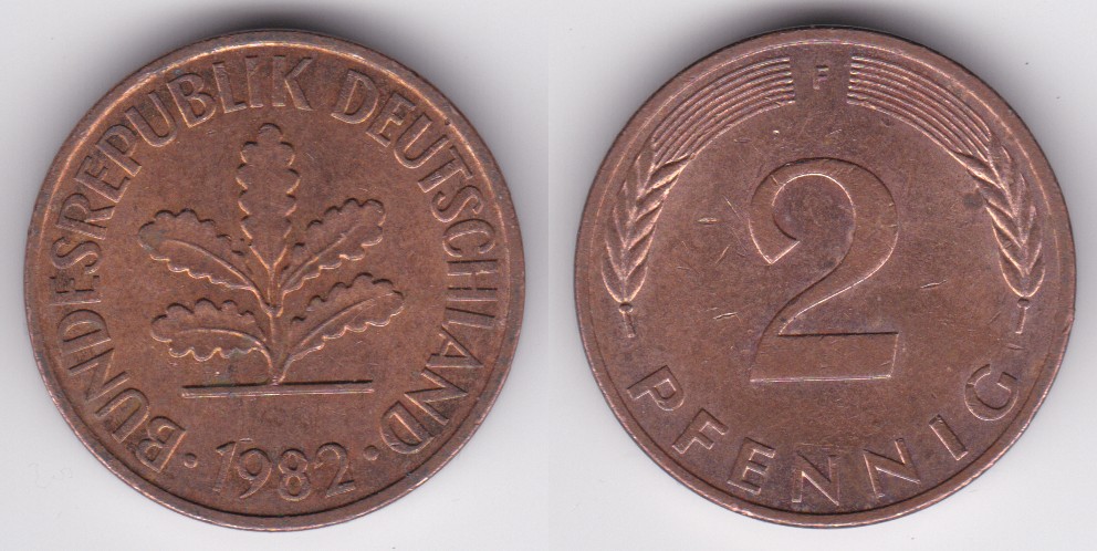 ![]() | 115594 | German Federal Republic | 1982-F | km106a | 2 Pfennig (1969-2001) | $0.25 | A |