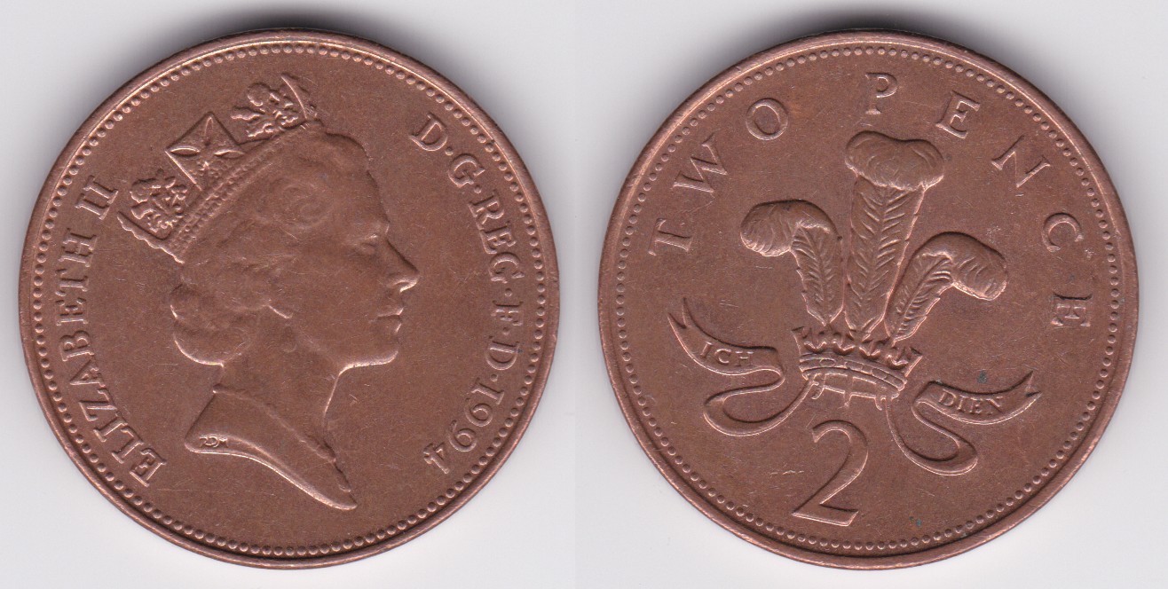 | 116654 | Great Britain | 1994 | km936a | 2 Pence (1992-1997) copper plated steel | $0.25 | A |