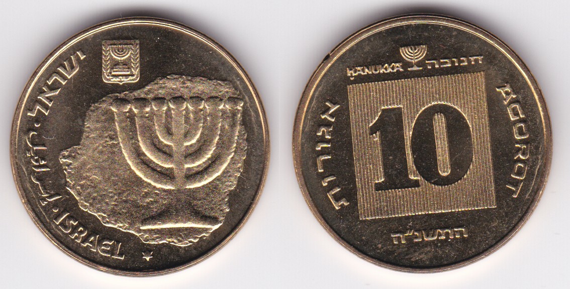 ![]() | 113803 | Israel | 1995 | km173 | 10 Agorot (1987--) Hanukkah | $3.50 | B |