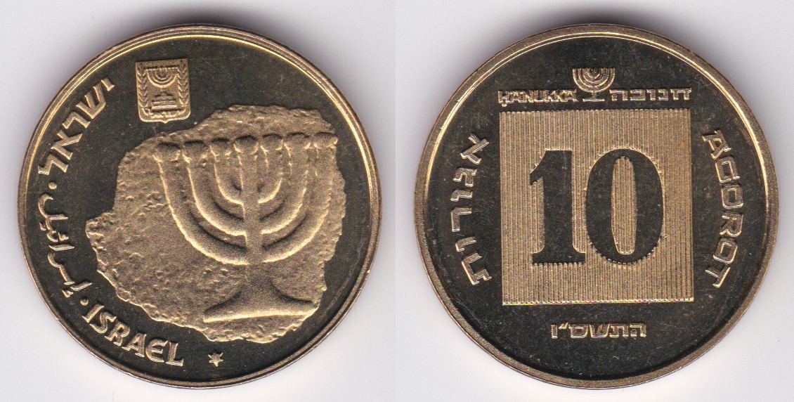 ![]() | 113839 | Israel | 2004 | km173 | 10 Agorot (1987--) Hanukkah | $3.50 | B |