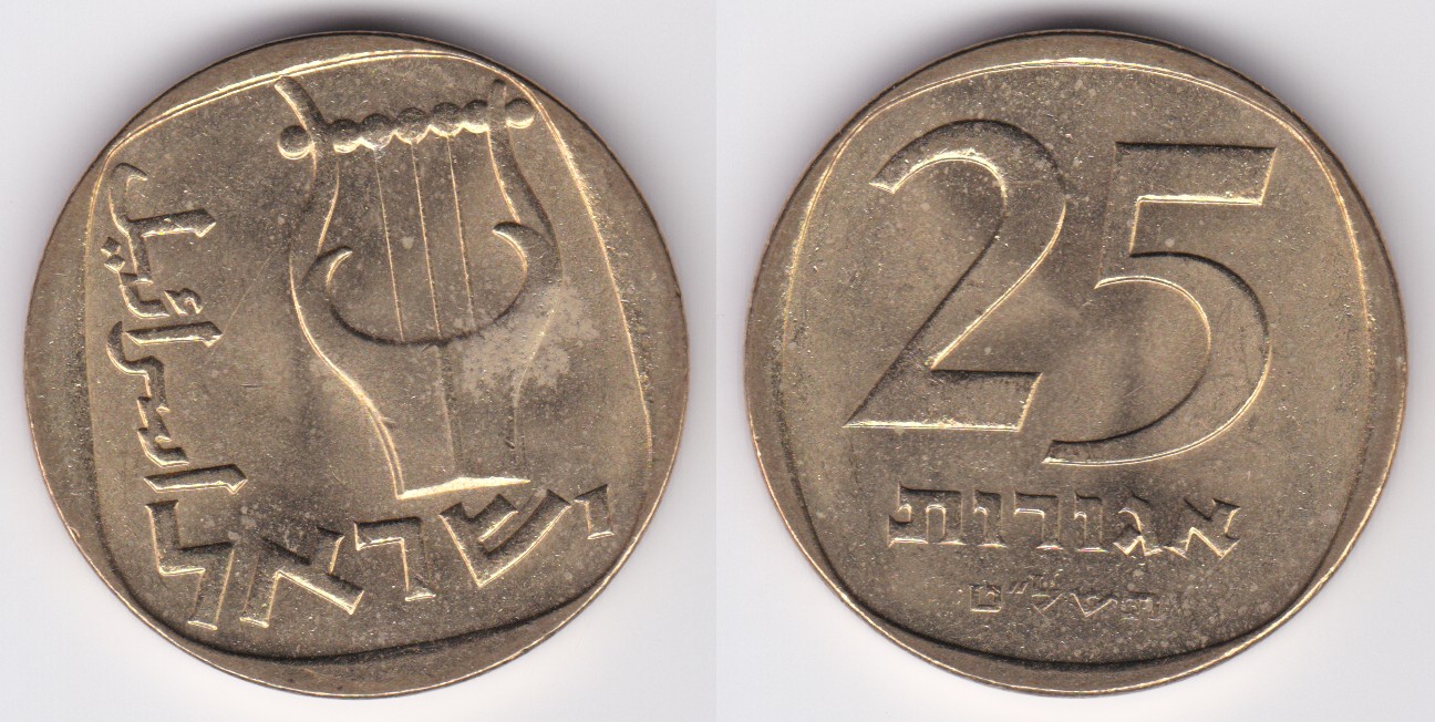![]() | 108923 | Israel | 1960 | km27 | 25 Agorot (1960-1979) | $0.25 | A |