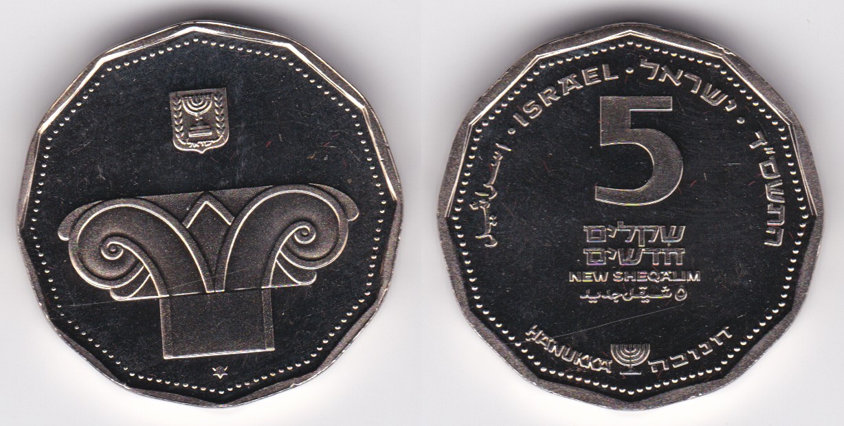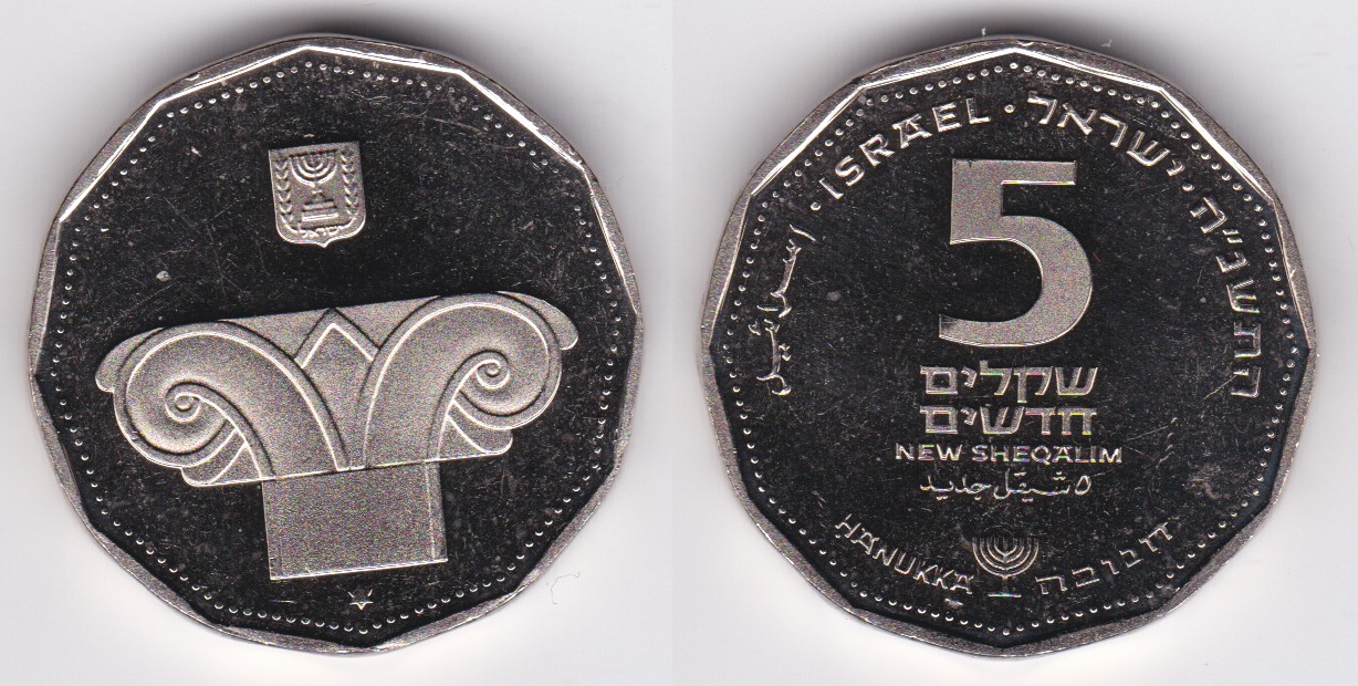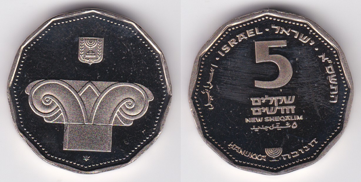 | 113829 | Israel | 2005 | km217 | 5 New Sheqalim (1991--) Hanukka | $9.00 | B |