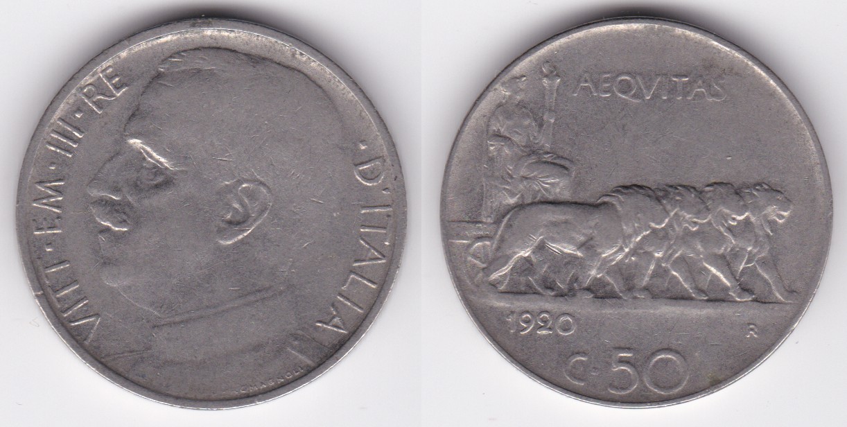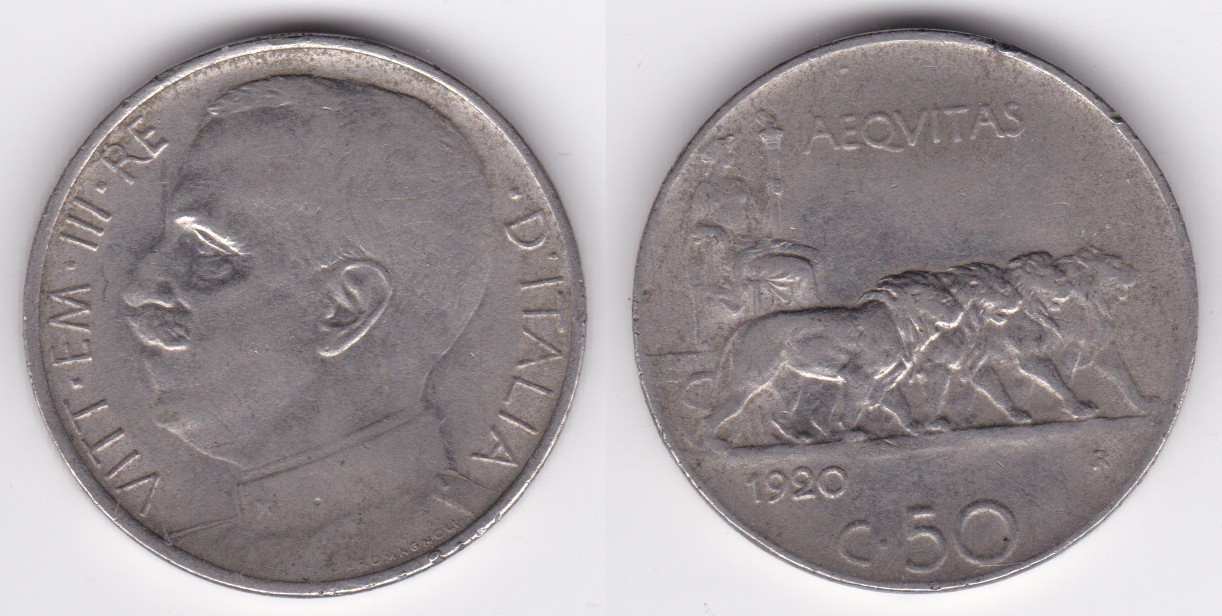![]() | 112709 | Italy | 1921 | km61.1 | 50 Centesimi (1919-1928) | $0.50 | A |