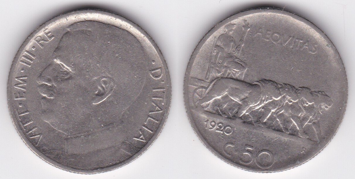 50 Centesimi (1919-1925) reeded