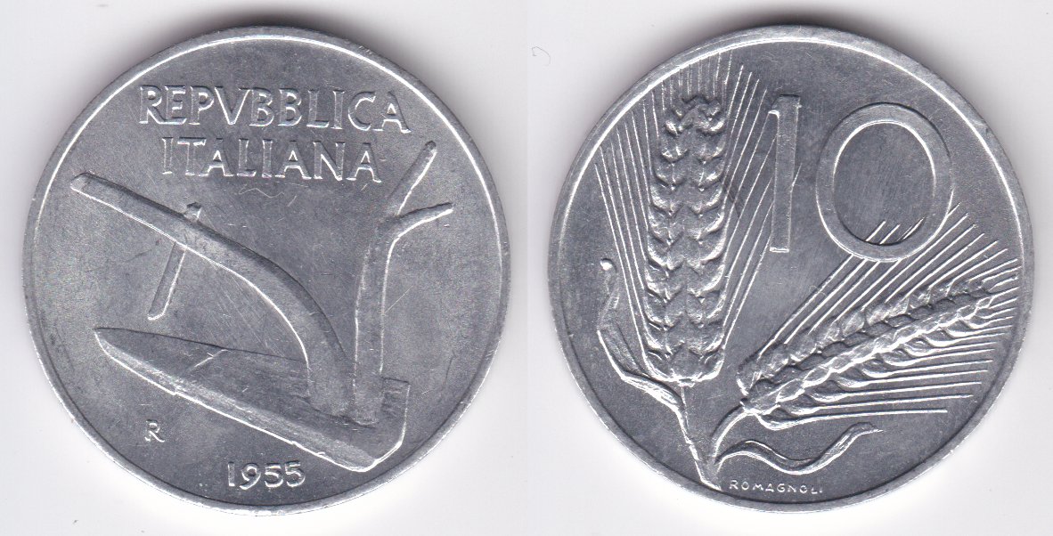 ![]() | 78745 | Italy | 1955 | km93 | 10 Lire (1951-2001) (2 available) | $0.50 | A |
