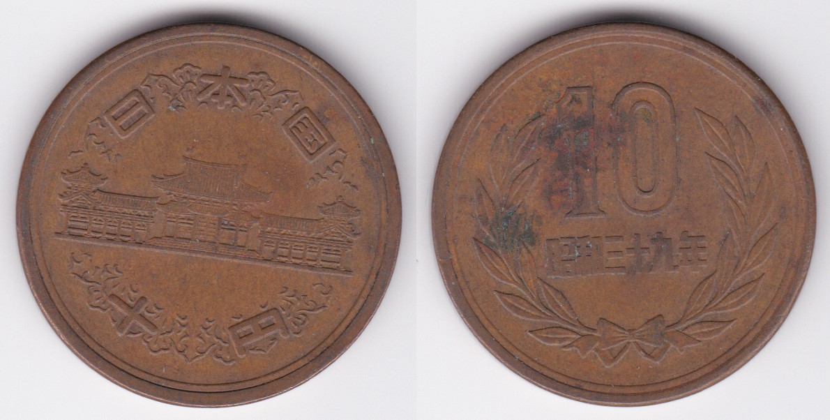 ![]() | 108914 | Japan | 1959 | y73a | 10 Yen (1959-1988) plain edge | $0.25 | A |