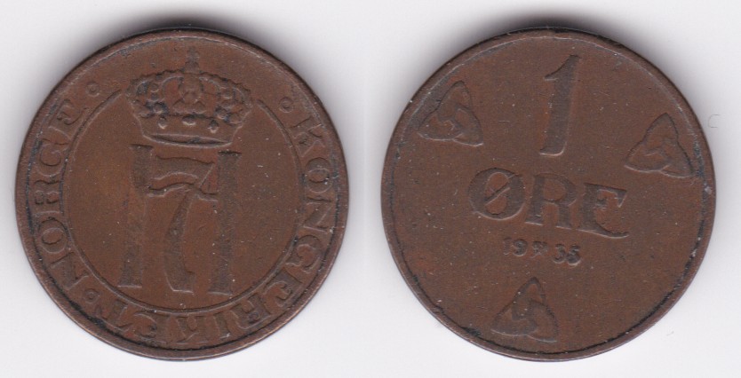 ![]() | 109599 | Norway | 1935 | km367 | 1 Ore (1908-1952) bronze (2 available) | $0.75 | A |