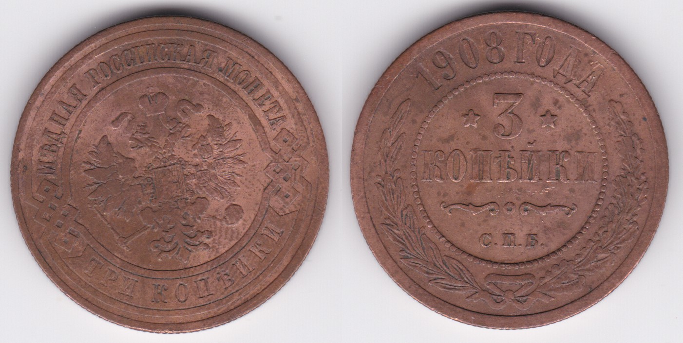 ![]() | 113181 | Russia | 1908 | y11.2 | 3 Kopeks (1867-1914) (2 available) | $19.00 | A |