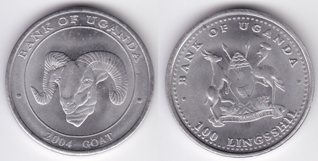 100 Shillings (2004) Year of the goat (nickel-plated steel)