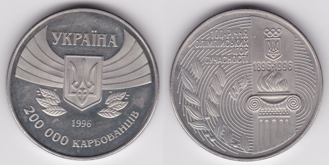 200,000 Karbovantsiv (1996) Olympic Flame and Logo