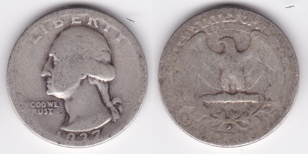 ![]() | 112857 | United States of America | 1937-D | km164 | quarter dollar (1932-1964) Washington silver | $10.00 | A |