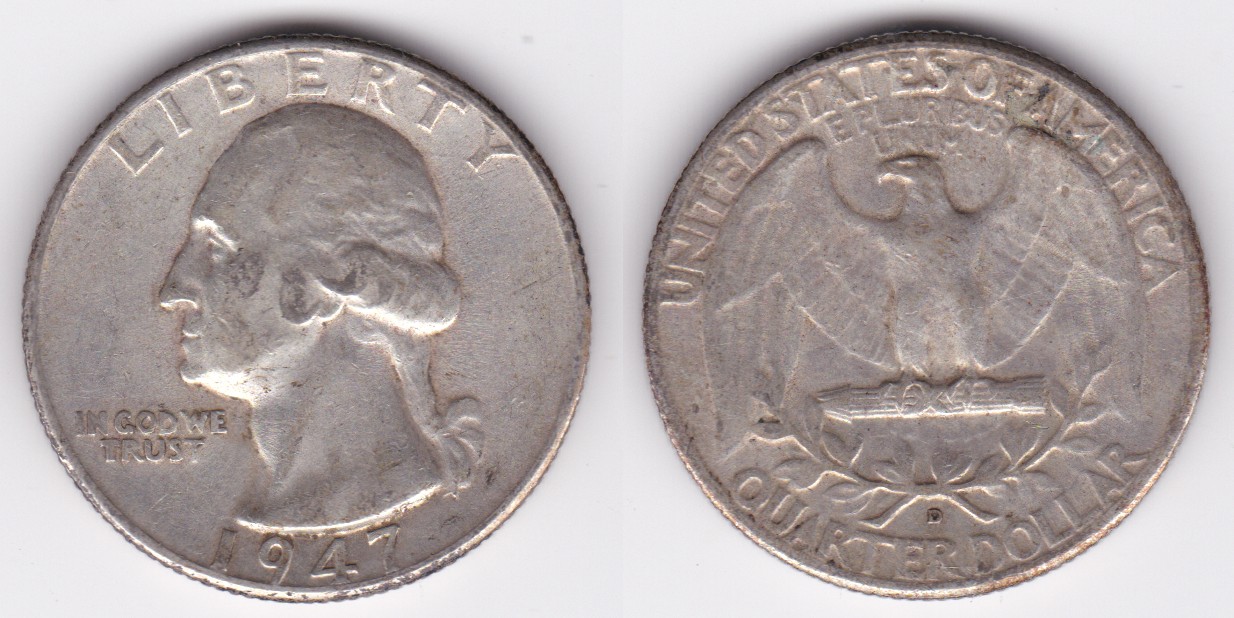 ![]() | 112872 | United States of America | 1947-D | km164 | quarter dollar (1932-1964) Washington silver | $9.75 | A |