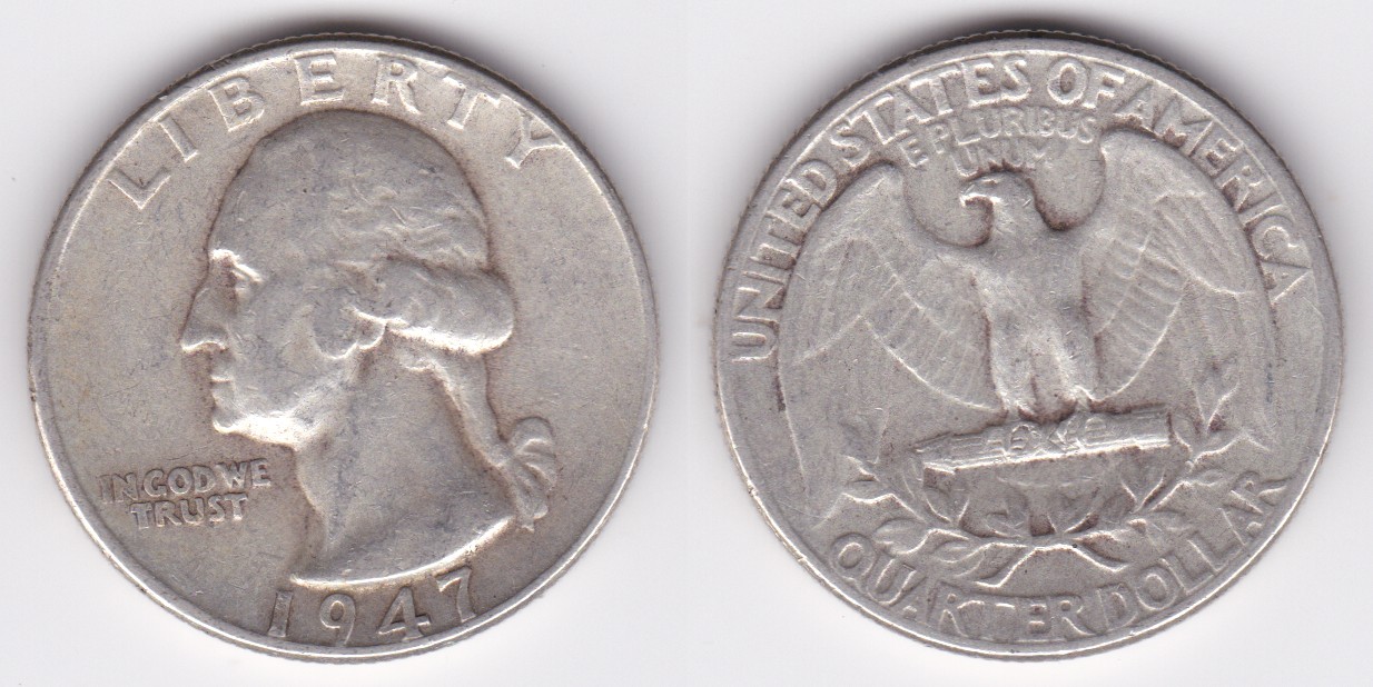 ![]() | 112873 | United States of America | 1947 | km164 | quarter dollar (1932-1964) Washington silver | $9.75 | A |