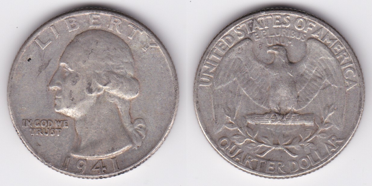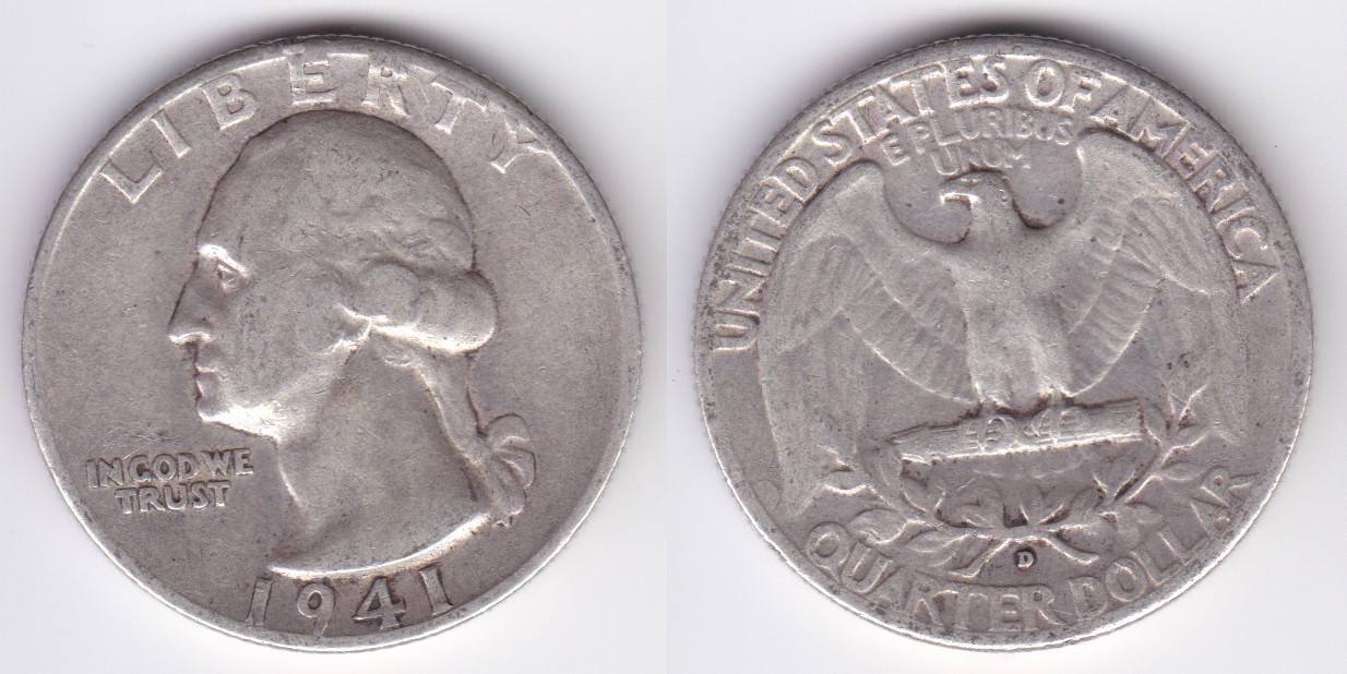 ![]() | 112880 | United States of America | 1941 | km164 | quarter dollar (1932-1964) Washington silver | $9.75 | A |