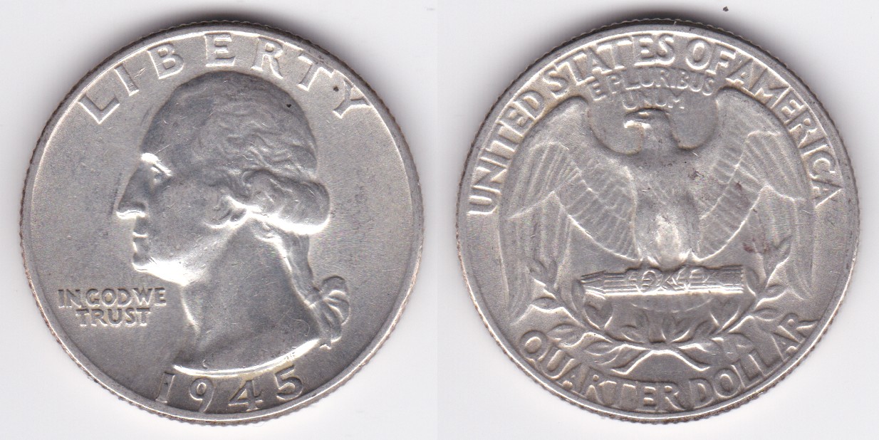 ![]() | 112888 | United States of America | 1945 | km164 | quarter dollar (1932-1964) Washington silver | $10.25 | A |