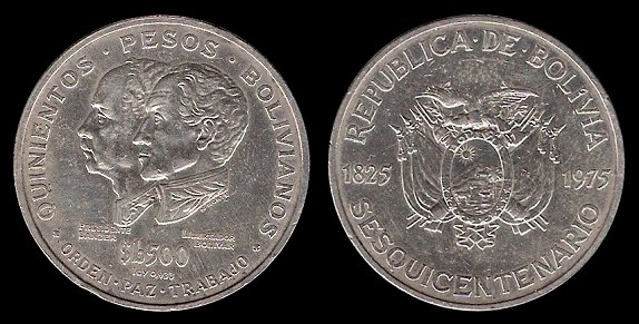 ![]() km192 1 Peso Bolivianos (1968-1980) | ![]() km197 5 Pesos Bolivianos (1976-1980) | ![]() km194 100 Pesos Bolivianos (1975) Banzer and Bolivar | ||