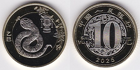 ![]() km2455 10 Yuan (2019) Year of the Pig | ![]() km2578 10 Yuan (2021) Year of the Ox | ![]() new 10 Yuan (2025) Year of the Snake | ||