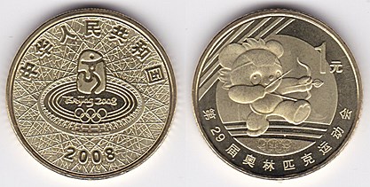 ![]() km1652 1 Yuan (2007) Year of the Pig | ![]() km1811 1 Yuan (2008) cartoon fencer | ![]() km1812 1 Yuan (2008) cartoon horse rider | ||